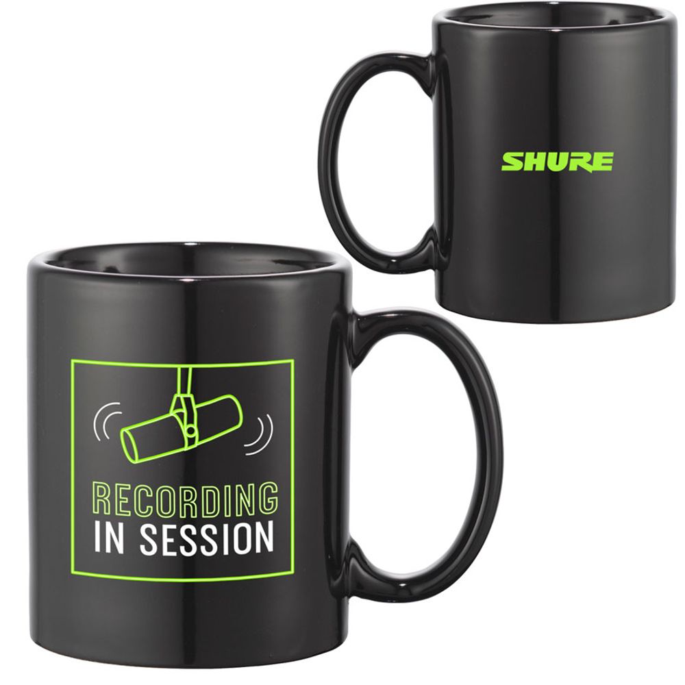 Enjoy your favorite beverage in the studio or at home with this ceramic "Recording In Session" 11 ounce mug.